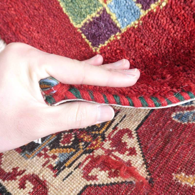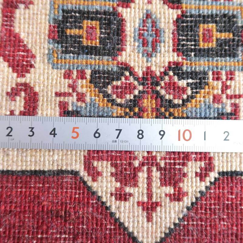 織りは、10cmあたり、およそ40から45目という普通のギャッベの数倍にもなる大変細かなルリバフ。抜け毛が少なく、手触りはふわりと柔らか。踏んだ時やんわりと沈み込む踏み心地です。腕の良い選りすぐられた織り子だけが手掛ける極上の手仕事です。