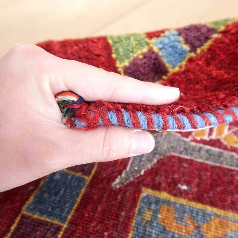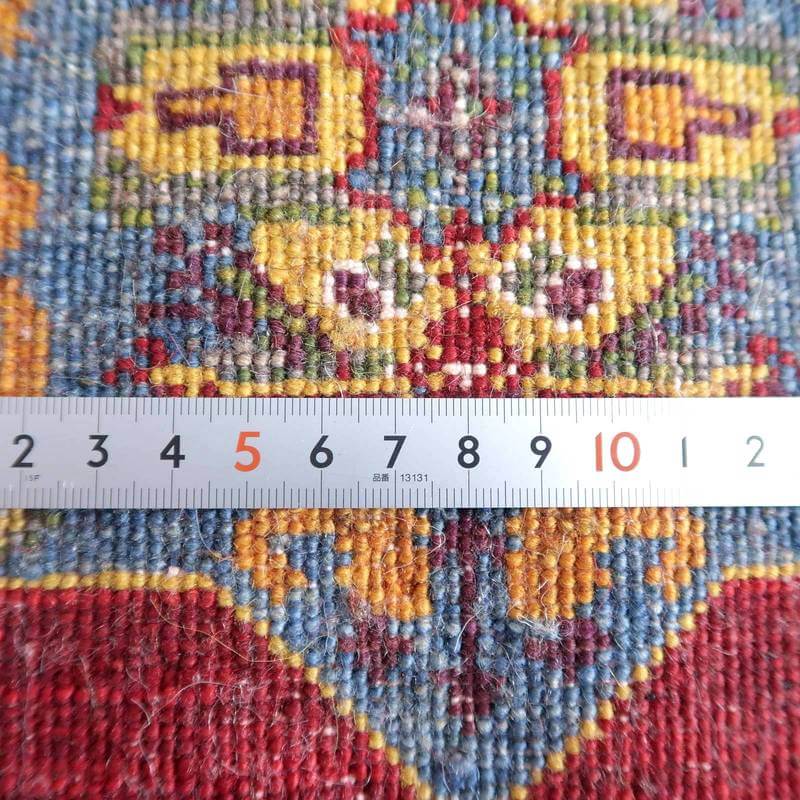 織りは、10cmあたり、およそ40から45目という普通のギャッベの数倍にもなる大変細かなルリバフ。抜け毛が少なく、手触りはふわりと柔らか。踏んだ時やんわりと沈み込む踏み心地です。腕の良い選りすぐられた織り子だけが手掛ける極上の手仕事です。