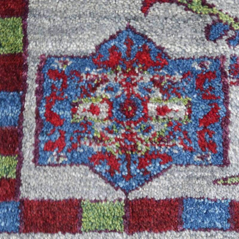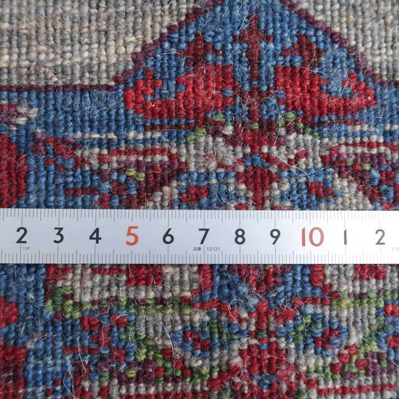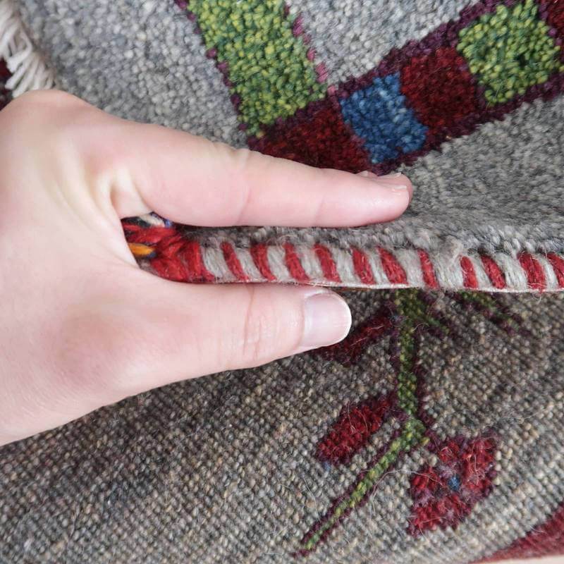 織りは、10cmあたり、およそ40から45目という普通のギャッベの数倍にもなる大変細かなルリバフ。抜け毛が少なく、手触りはふわりと柔らか。踏んだ時やんわりと沈み込む踏み心地です。腕の良い選りすぐられた織り子だけが手掛ける極上の手仕事です。