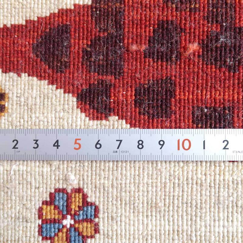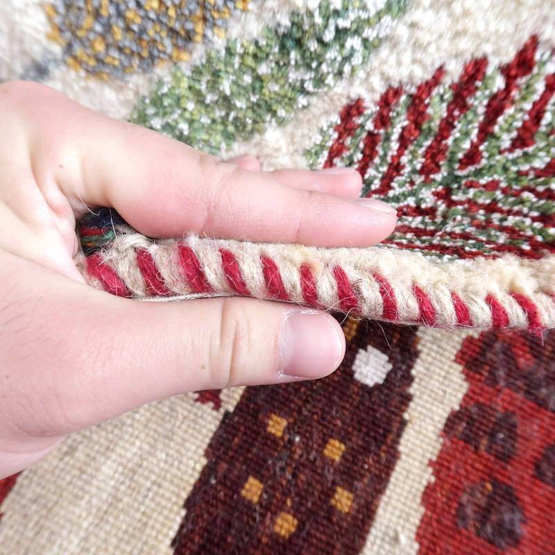 織りは、10cmあたり、およそ40から45目という普通のギャッベの数倍にもなる大変細かなルリバフ。抜け毛が少なく、手触りはふわりと柔らか。踏んだ時やんわりと沈み込む踏み心地です。腕の良い選りすぐられた織り子だけが手掛ける極上の手仕事です。