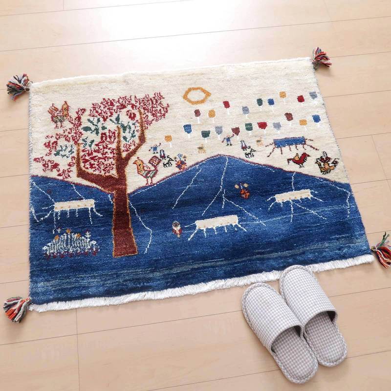 プレミアムギャッベ/ホシナマイ(ルリバフ) 91×67cm(HSS-77770)