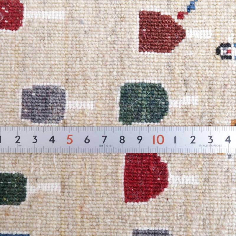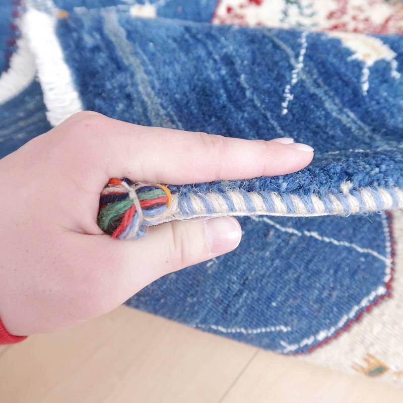 織りは、10cmあたり、およそ40から45目という普通のギャッベの数倍にもなる大変細かなルリバフ。抜け毛が少なく、手触りはふわりと柔らか。踏んだ時やんわりと沈み込む踏み心地です。腕の良い選りすぐられた織り子だけが手掛ける極上の手仕事です。