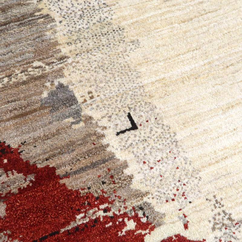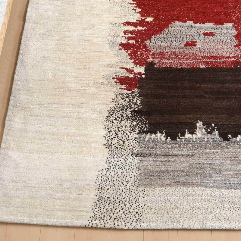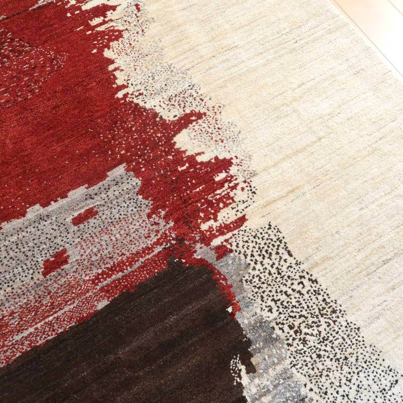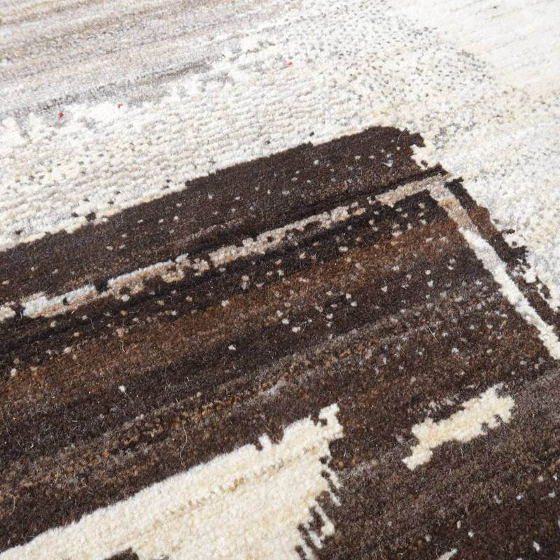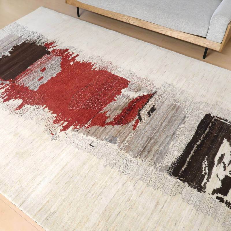 アイボリー、グレーやベージュ、こげ茶などの赤以外のカラーは、刈り取った羊の毛を染めずにそのまま使用した天然の羊毛色です。作者の見るもの、心の内が、独自の感性でギャッベに投影されています。色合いを味わったり、抽象的な構図から広がりのある風景が見えてくるような、想像力をかき立てられるアートなデザイン。見る人は、作者に思いをはせ、時空を超えたひと時がしばし流れそうです。冬毛の柔らかな最高部位のウールのみを使用して細かく編んだ最上級のソフトな手触り。無染色のタイプの中では白っぽく、明るいカラーになります。