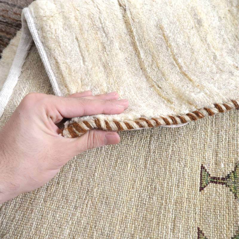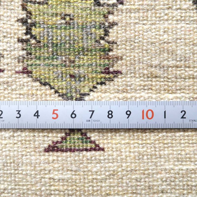 織りは、10cmあたり、およそ40から45目という普通のギャッベの数倍にもなる大変細かなルリバフ。抜け毛が少なく、手触りはふわりと柔らか。踏んだ時やんわりと沈み込む踏み心地です。腕の良い選りすぐられた織り子だけが手掛ける極上の手仕事です。