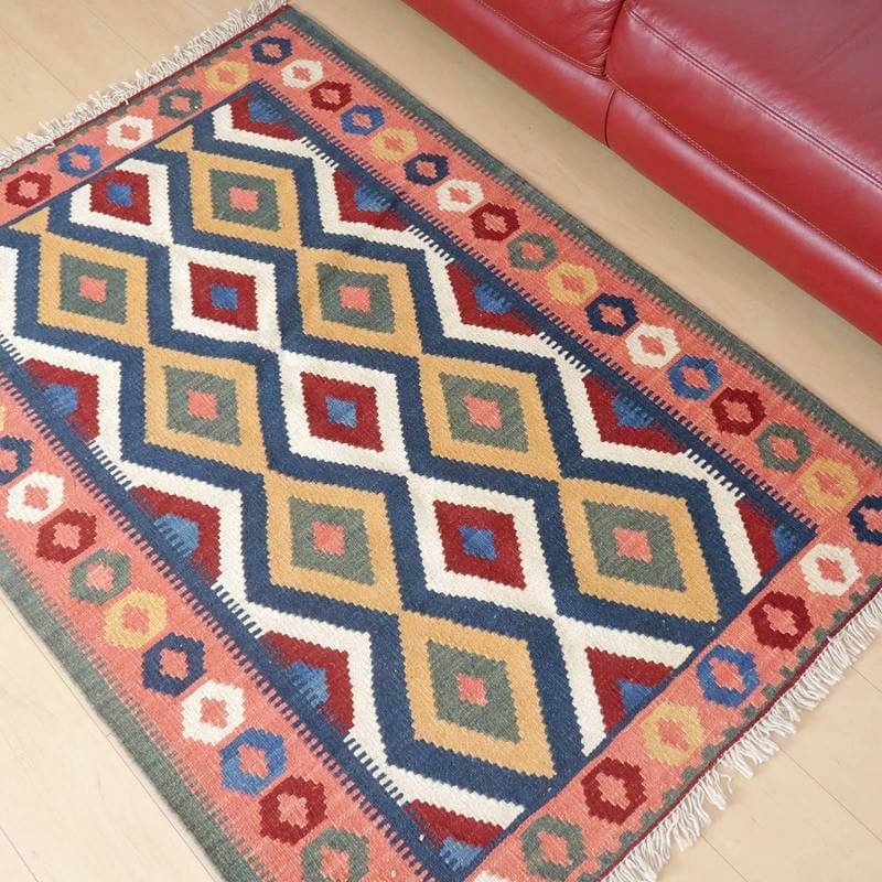 ペルシャ(イラン)産のキリムは、1_飽きのこないデザイン、2_いつの時代もあらゆるインテリアに馴染む、3_モダンで芸術性の高い図柄、として世界各国で、愛用され、それゆえ模倣もされています。図柄の美しさはもちろん、長い歴史に培われてきた製法や織りのテクニックの完成度は、世界最高峰。本物志向の方、違いの分かる方に愛されています。