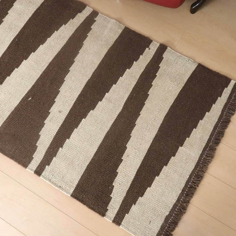 イラン南部シラーズ地方のキリムです。生成りや茶、グレーなどの元々の羊の毛色をそのまま活かした無染色のウールを使用したナチュラルカラーなので、敷く場所を選ばず、落ち着いた雰囲気で馴染みます。幾何学やギザギザ文様のシンプルな中にもリズムのあるモダンなデザイン。カシュガイの女性が昔ながらに織り上げたキリムなので、よく締まった丈夫な織り目で、早く仕上げる為、ゆるく粗く織られる商用生産のキリムには無い、誠実さと愛着が感じられる味わい深さがあります。作りは、平織り(ひらおり)という裏表の無い、両面を使える織り方。カシュガイ・キリムは遊牧のテント生活用の為、丈夫に織られ、洗濯も簡単、普段使いのラグとして扱いやすいキリムです。