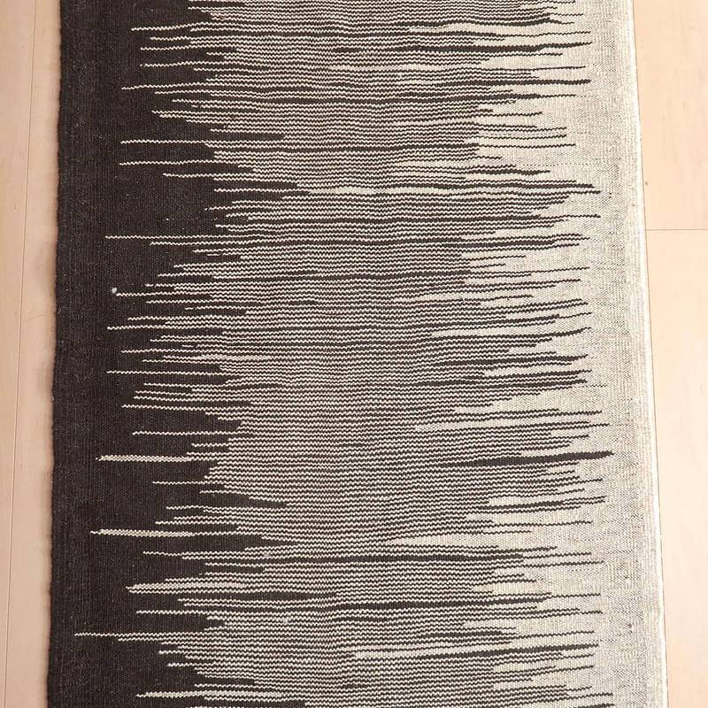 イラン南部シラーズ地方のキリムです。生成りや茶、グレーなどの元々の羊の毛色をそのまま活かした無染色のウールを使用したナチュラルカラーなので、敷く場所を選ばず、落ち着いた雰囲気で馴染みます。幾何学やギザギザ文様のシンプルな中にもリズムのあるモダンなデザイン。カシュガイの女性が昔ながらに織り上げたキリムなので、よく締まった丈夫な織り目で、早く仕上げる為、ゆるく粗く織られる商用生産のキリムには無い、誠実さと愛着が感じられる味わい深さがあります。作りは、平織り(ひらおり)という裏表の無い、両面を使える織り方。カシュガイ・キリムは遊牧のテント生活用の為、丈夫に織られ、洗濯も簡単、普段使いのラグとして扱いやすいキリムです。