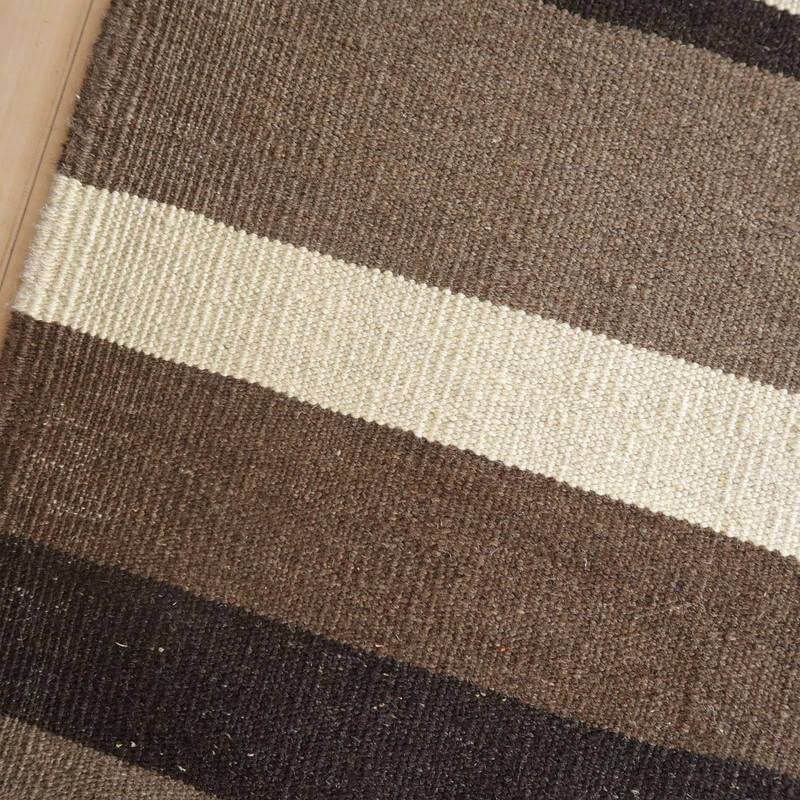 イラン南部シラーズ地方のキリムです。生成りや茶、グレーなどの元々の羊の毛色をそのまま活かした無染色のウールを使用したナチュラルカラーなので、敷く場所を選ばず、落ち着いた雰囲気で馴染みます。幾何学やギザギザ文様のシンプルな中にもリズムのあるモダンなデザイン。カシュガイの女性が昔ながらに織り上げたキリムなので、よく締まった丈夫な織り目で、早く仕上げる為、ゆるく粗く織られる商用生産のキリムには無い、誠実さと愛着が感じられる味わい深さがあります。作りは、平織り(ひらおり)という裏表の無い、両面を使える織り方。カシュガイ・キリムは遊牧のテント生活用の為、丈夫に織られ、洗濯も簡単、普段使いのラグとして扱いやすいキリムです。